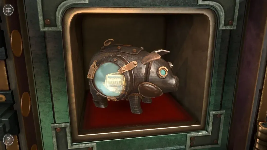 Between the five chapters, which comprise four boxes each, there are further puzzles to solve on the floor of the tower mansion you’re exploring. The fragments you collect are used to help you obtain a token to take you to the next chapter — so in essence, they make an additional set of puzzles. And I’ll be honest: I couldn’t get enough of them. Call me a puzzle monster (omnomonom), but when things are this much fun to interact with, I could spend days flipping switches and unlocking secret compartments and not get bored. I lost track of how many different ways there were to open a hatch or unlock a drawer. You’ll rotate cogs, slide panels, connect fuses and pull levers, each action underscored with phenomenally satisfying sound effects. I honestly think that half the joy you elicit from games like this is completely dependent on sound design. You can make a puzzle as richly detailed and as sumptuously designed as you like, but if its resolution is announced by a few limp clicks pulled from a free SFX site, you’ll walk away disappointed. Boxes clearly agrees, which is why there’s enough ASMR goodness packed into these six or so hours of gameplay to make you dream of grinding gears before you go to sleep. Smashing a piggy bank has never felt or sounded so damn sexy.