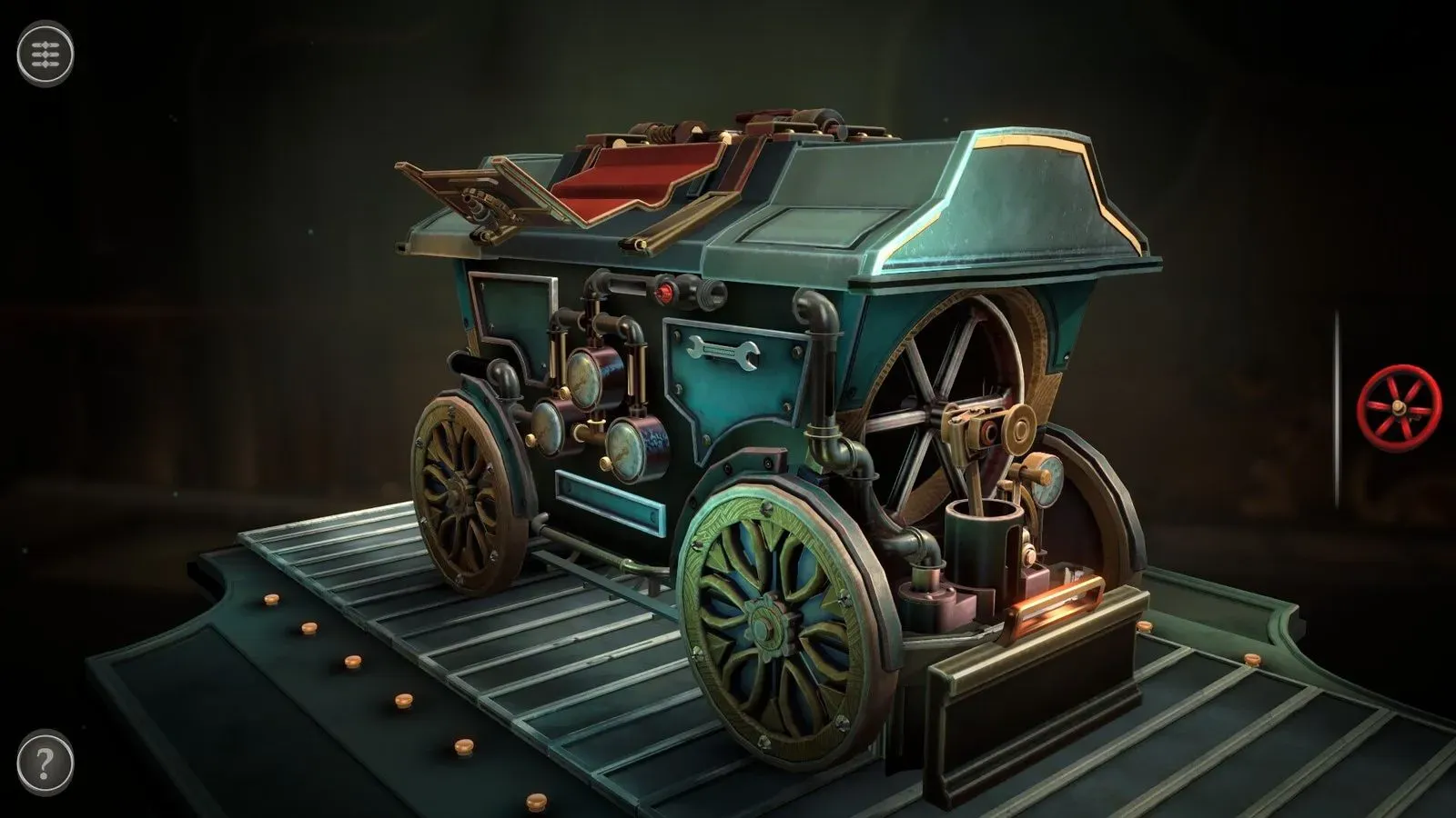 While it may seem like there’s a limit to how much you can creatively do with a box, the developer cleverly integrates different styles of gameplay into the mix, such as reflex puzzles, a 2.5D platform section, and even a game of Grandma’s Footsteps. These all tie in thematically with the boxes so they don’t feel jarring; rather, they’ll make you nod in appreciation at just how well crafted everything is. You’ll have your favourites, of course, given that there are twenty different “main” boxes to solve. As you progress, the idea of what constitutes a box becomes a little looser as the devices evolve into weird and wonderful contraptions: a vintage car, a slot machine, a temple. Even the mansion’s puzzles outside of the boxes are fabulously designed. In one, the assembled fragments help power a projector which screens a film for you to study. In another, you’ll navigate a miniature model of a castle. I genuinely found myself shaking my head in wonder at the creativity and thought which had gone into each chapter.