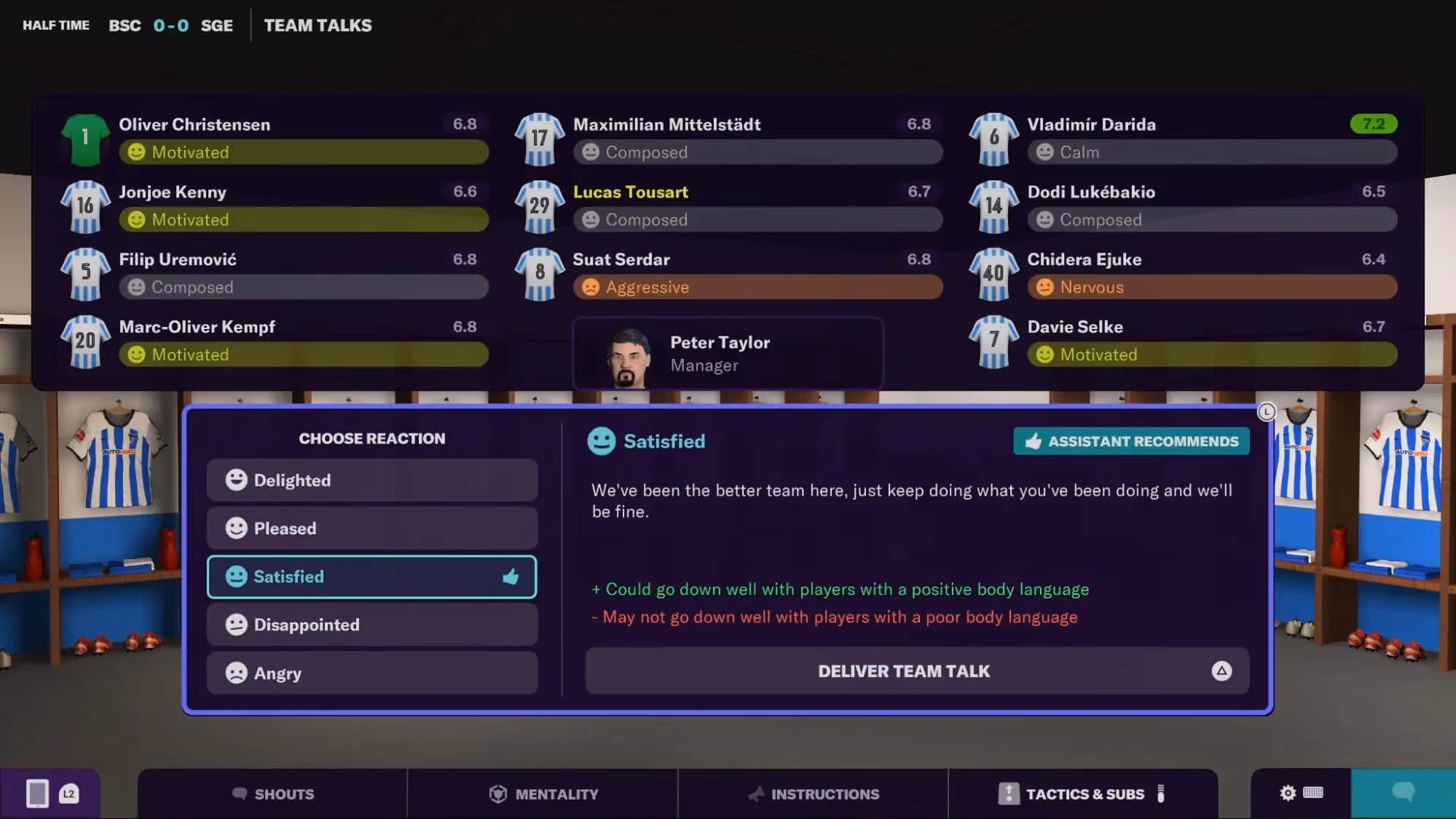Better still, I never had to navigate through a press conference which is easily one of my least favourite areas when playing on the PC version. Whilst I’ll never hand the responsibility over, they’ve always lacked any sort of feeling to them, with my attendance purely maintained so I can try to get the appropriate reaction for players from my words. Team talks are still included, so should you find yourself 2-0 down at half-time you can try to spur your team to turn the game around. You can’t quite go as nuanced as you can on PC but even a general team talk can be enough to give your players the kick they need to go back out and perform. You can even yell at them from the sidelines too as the matchday experience is very similar and, interestingly, I found the match engine much more pleasant to look at — though this could be just down to the fact my TV is OLED and my monitor isn’t.