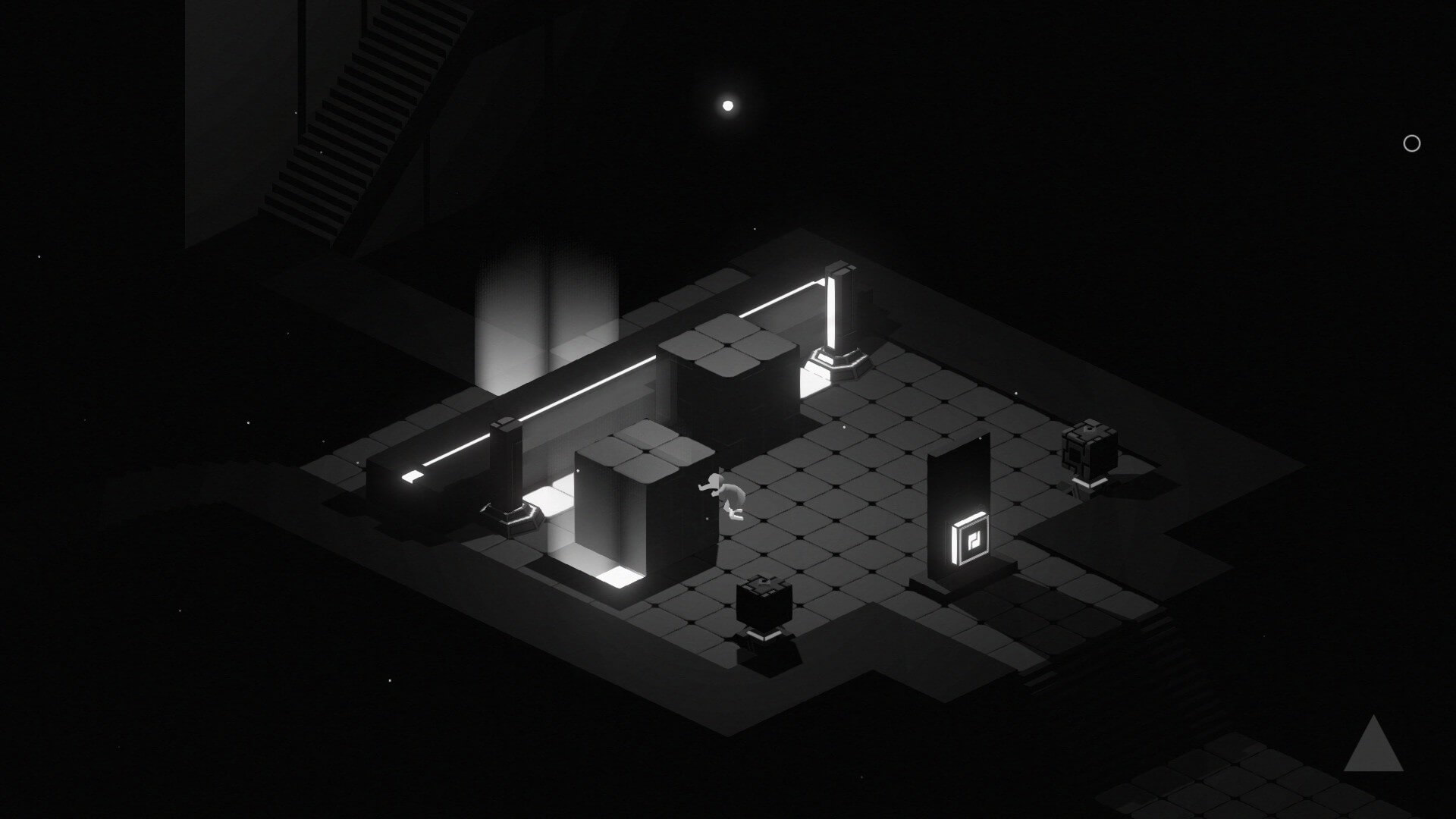 Dark avatars stalk around each level and either need to be avoided or lured into the light to be destroyed. They march up and down basic AI paths so are rarely more than a minor nuisance, but what proves more troublesome is your field of vision. The glowing orb that accompanies you illuminates your path ahead and the light-generating machines required for puzzles offer further respite from the darkness, but otherwise you’ll be squinting to find the next path. As levels increase in size and the camera zooms out to give you an overview of a section or an entire map, the dizzying task ahead of you might feel daunting. You don’t need to collect all of your light essence to finish a level, but when you miss one and realise that it will require a monumental effort to backtrack to get it, your commitment for total completion may waver.