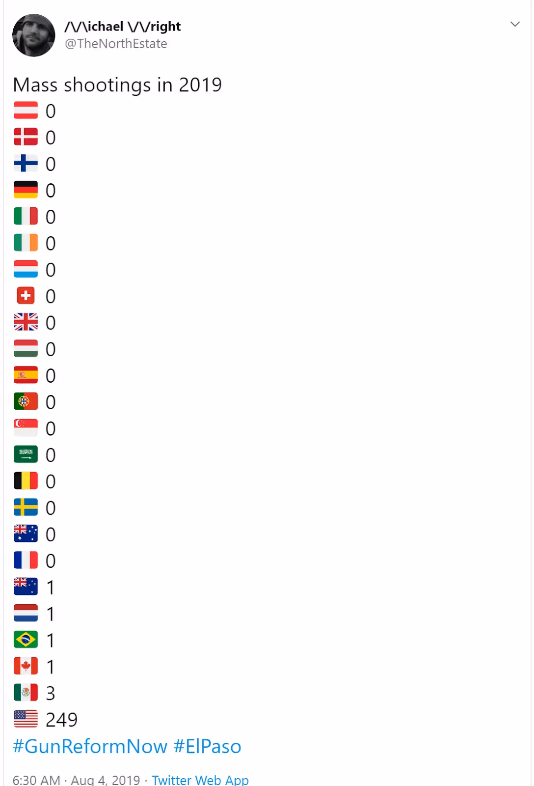 So this Saturday just gone we heard about another mass shooting in America, this time in a Walmart store in El Paso, Texas. To date, twenty-two souls have lost their lives in this latest gruesome affair, alongside nine more in a further shooting in Dayton, Ohio on the very same day.