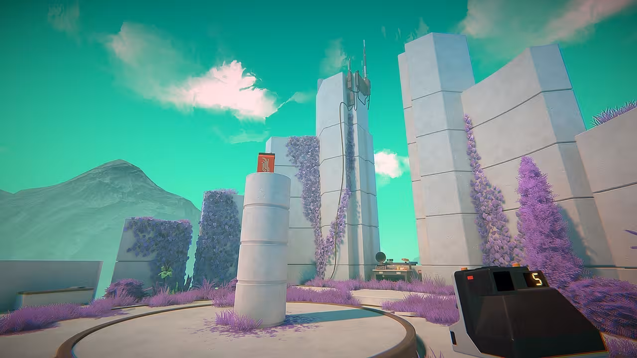 One example from my playthrough perfectly encapsulates the "aha" moment this game provides in spades. I was stuck in a level, an aesthetically pleasing mix of concrete walls and lush, potted greenery. I needed to power a teleporter to leave the area, but the battery was behind a cage I couldn’t pass. I didn’t have a key. I didn’t have a crowbar. What I did have was a picture of the sky. Just a blue sky. It seemed useless. I spent ages running around, looking for a hidden switch. Then, it hit me. I held up the photo of the sky and placed it over the cage wall. The photo of the sky overwrote the reality of the cage. The wall was gone, replaced by empty blue space. I walked through the hole I had literally cut into the universe and grabbed the battery. I was annoyed it took me quite so long to work it out, but ultimately the solution was elegant and made me feel warm and snuggly.