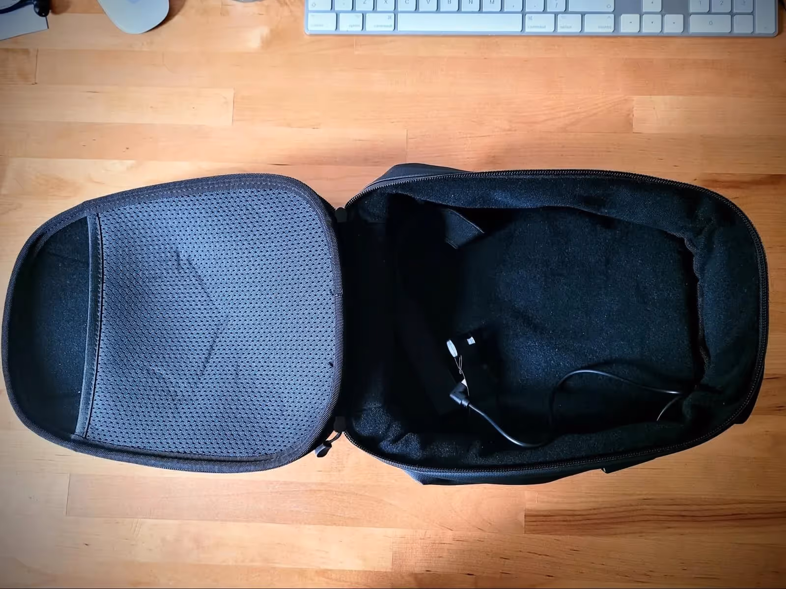 As for the rest of the materials, the bag’s main outer fabric is touted to be waterproof and the seams are tight, and my limited testing showed no signs of letting anything in. Would I want to try this out in the rain though? Absolutely not. The main pocket is lined with a soft cotton fabric to prevent scratching, whilst the pocket itself is protected by a hardened shell. The selling point of the bag for most, it’s certainly hard enough to withstand a few drops or the odd bang but it doesn’t offer the kind of protection I’d want if I was travelling with a fragile and expensive VR headset.